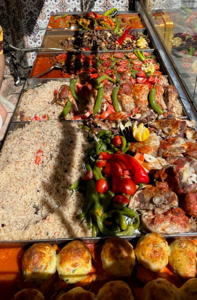 We had time to kill on the last day so went walking to some street near Istiklal street. There were cafes, small shops, art shops, small hotels and guest houses. We almost got lost in the labyrinth of these lanes and by lanes but got a great feel of the place as bag packers and budget tourists stay in these places. Normally we stick to high profile touristy places so ignore such places. Some shops were very interesting and an art gallery had some great paintings. Every second shop seemed to be a cafe. While Turkish coffee is nice and popular the normal coffee is extremely popular and it seems people are drinking coffee the whole day. We then went and sat in a park called Gezi park near Taksim square and saw the locals enjoying their weekend with their kids while we sipped our coffee. The coffee was nice and so was the view of the Suleiman mosque and the Bosporus. And what better way to end the trip than to just go to a local restaurant and order whatever locals were eating. As usual we had to add salt and chillies to the lamb and chicken to make it tasty for our palette. However, we should not associate the Turkish food only with Kebabs and non vegetarian food. Eggplant, Red & yellow pepper, potatoes, tomatoes, spinach celery etc are very popular. Dolma is a dish of stuffed grape leaves and stuffing could be of anything. To enjoy a city it becomes important to enjoy what the locals enjoy.