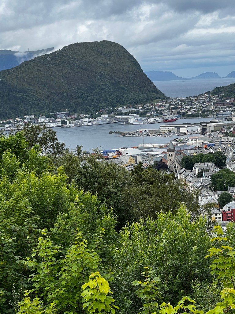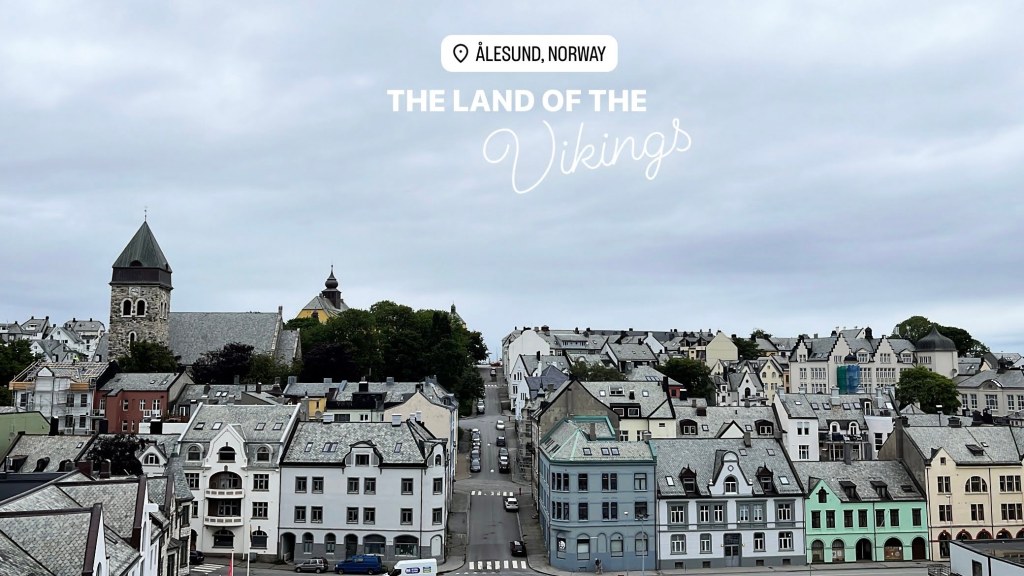 Alesund : It is a lovely town and is known for art nouveau architecture. It is a gateway to some spectacular fjords –Hjørundfjord being one of them, the UNESCO-listed Geirangerfjord another. We took the small sightseeing train from the port which introduced us to the town and it’s history. It took us to the Aksala mountain for photographs and then dropped us off at embarkation point. Rest of the time we spent exploring the city and the shops and trying to understand what art nouveau was. We could admire all the fjords, villages and waterfalls from the ship once the ship sailed. The announcement in the ship the same morning had told us to make sure that we were on the decks to admire this at a prescribed time.