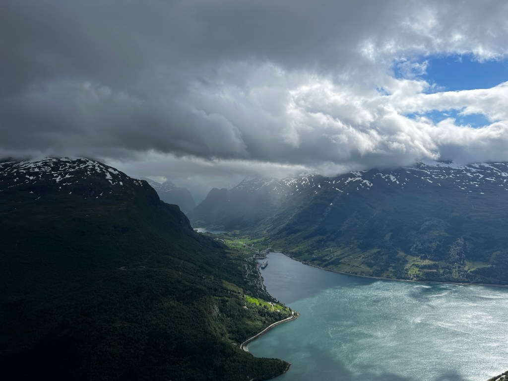 We came back to the port but decided to go to Loen Skylift. We didn’t even enter the ship but had hamburger lunch outside. The same company had vehicles to go here also and we bought the tickets (bus ride and skylift) but forgot to take discount as we realised later that they were offering discount on the 2nd excursion on the same day. The views from that height were stunning but it was also extremely cold. I think it was around 3 deg C at the top and very windy. We braved the cold for 40 minutes and then rushed back to the cable car.